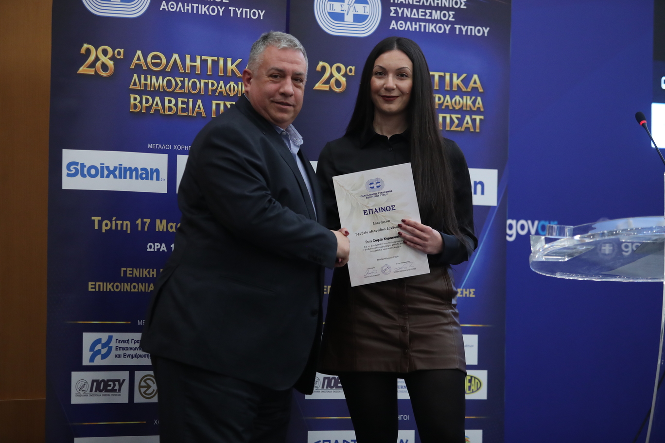 Το Βραβείο «ΠΟΕΣΥ» απονεμήθηκε στον Χάρη Σταύρου για τη συνέντευξη με τον Γιάννη Αντετοκούνμπο, Ιστοσελίδα «sport24.gr». Τη βράβευση έκανε ο πρόεδρος της ΠΟΕΣΥ Σωτήρης Τριανταφύλλου.