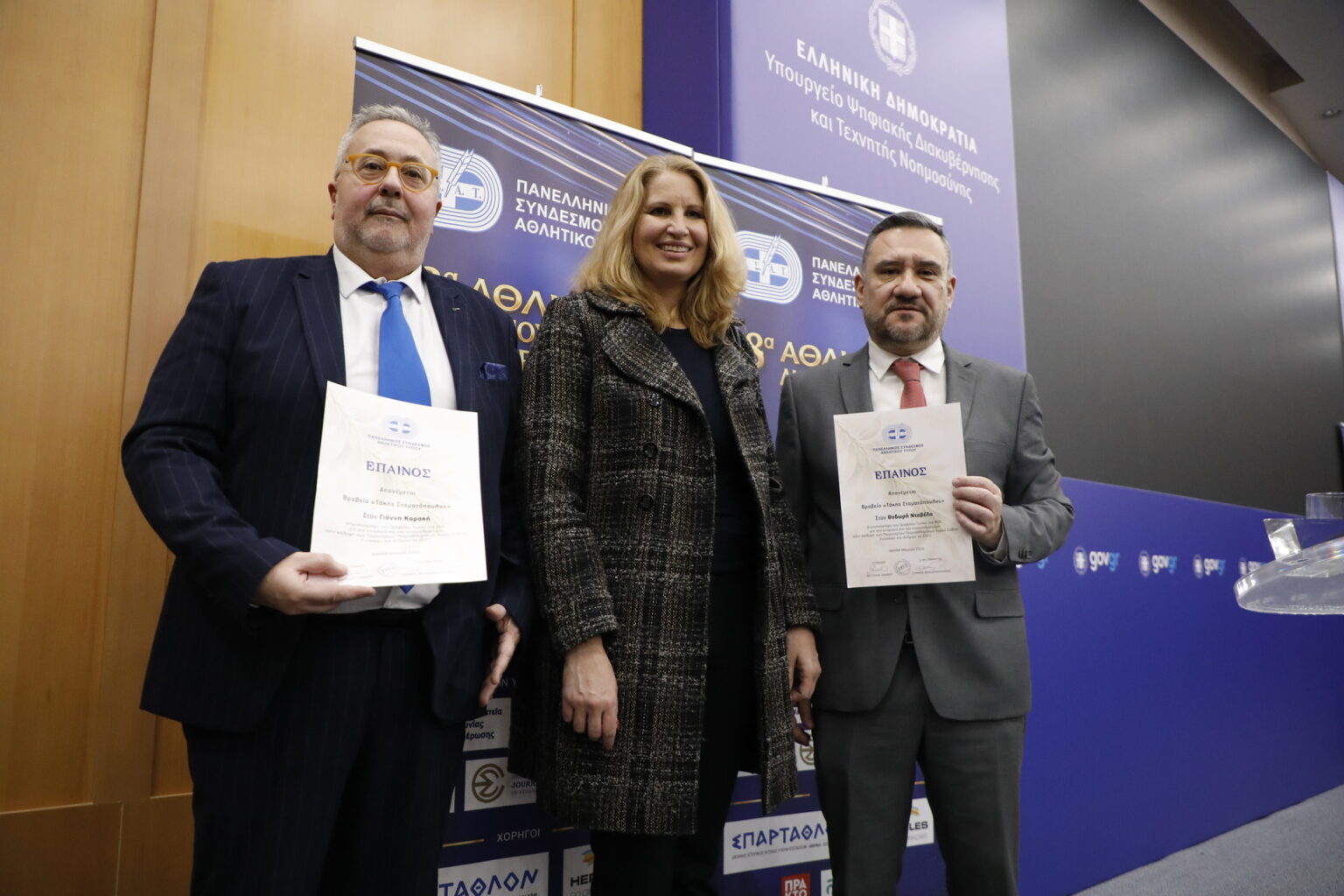 ► Στην Ελληνική Ραδιοφωνία Τηλεόραση (Βραβείο «Δημήτρης Κωνσταντάρας») για τη συμπλήρωση 60 ετών προσφοράς στην ενημέρωση, τον πολιτισμό και την κοινωνία, καθώς και για τη δημιουργία του αμιγώς αθλητικού καναλιού ΕΡΤ2ΣΠΟΡ, μιας πρωτοβουλίας που ενισχύει την προβολή του αθλητισμού και αναδεικνύει τις αξίες του. Το βραβείο παρέλαβε ο διευθυντής αθλητικού τμήματος της ΕΡΤ Γιάννης Δάρας από τον Γενικό Γραμματέα Επικοινωνίας και Ενημέρωσης, Δημήτρη Κιρμικίρογλου. Την εκδήλωση τίμησε με την παρουσία του και ο Λάμπρος Κωνσταντάρας, γιος του αείμνηστου Δημήτρη, ο οποίος και παρέλαβε τιμητική διάκριση στη μνήμη του πατέρα του.