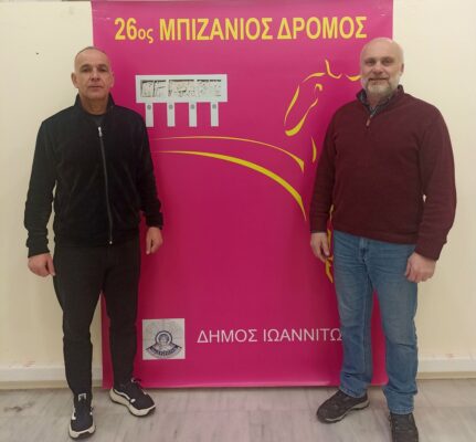 https://www.agon.gr/wp-content/uploads/2026/02/Tsimaris-Palatzidis-300x2... 300w, https://www.agon.gr/wp-content/uploads/2026/02/Tsimaris-Palatzidis-1024x... 1024w, https://www.agon.gr/wp-content/uploads/2026/02/Tsimaris-Palatzidis-768x7... 768w, https://www.agon.gr/wp-content/uploads/2026/02/Tsimaris-Palatzidis-960x8... 960w, https://www.agon.gr/wp-content/uploads/2026/02/Tsimaris-Palatzidis-431x4... 431w, https://www.agon.gr/wp-content/uploads/2026/02/Tsimaris-Palatzidis-585x5... 585w" sizes="auto, (max-width: 1100px) 100vw, 1100px" title="Επί τάπητος ζητήματα οργάνωσης του 26ου Μπιζάνιου Δρόμου 9" />Οργανωτικά ζητήματα ενόψει του 26ου Μπιζάνιου Δρόμου συζήτησαν σε συνάντησή τους ο πρόεδρος του Συλλόγου Δρομέων Ιωαννίνων Ευάγγελος Τσίμαρης και ο προϊστάμενος του Τμήματος Άθλησης και Νέας Γενιάς του Δήμου Ιωαννιτών Ευάγγελος Παλατζίδης.