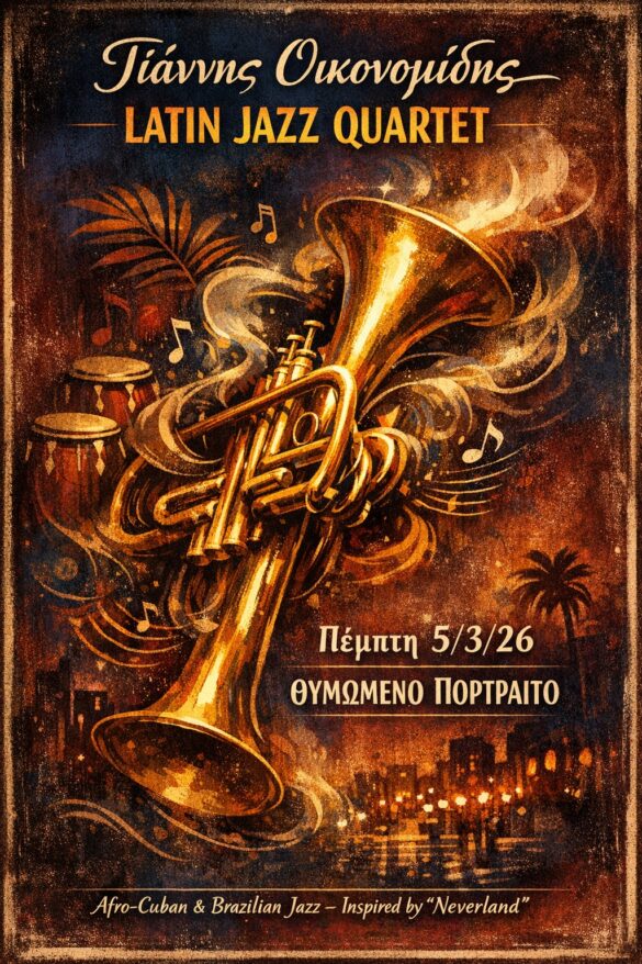 https://www.agon.gr/wp-content/uploads/2026/03/Oikonomidis-latin-jazz-20... 200w, https://www.agon.gr/wp-content/uploads/2026/03/Oikonomidis-latin-jazz-68... 683w, https://www.agon.gr/wp-content/uploads/2026/03/Oikonomidis-latin-jazz-76... 768w, https://www.agon.gr/wp-content/uploads/2026/03/Oikonomidis-latin-jazz-96... 960w, https://www.agon.gr/wp-content/uploads/2026/03/Oikonomidis-latin-jazz-26... 267w, https://www.agon.gr/wp-content/uploads/2026/03/Oikonomidis-latin-jazz-58... 585w" sizes="auto, (max-width: 720px) 100vw, 720px" title="Γιάννης Οικονομίδης Latin Jazz Quartet στο Θυμωμένο Πορτραίτο 10" />Το Γιάννης Οικονομίδης Latin Jazz Quartet εμφανίζεται την Πέμπτη 5 Μαρτίου, στις 10το βράδυ, στο Θυμωμένο Πορτραίτο (Καποδιστρίου 20).
