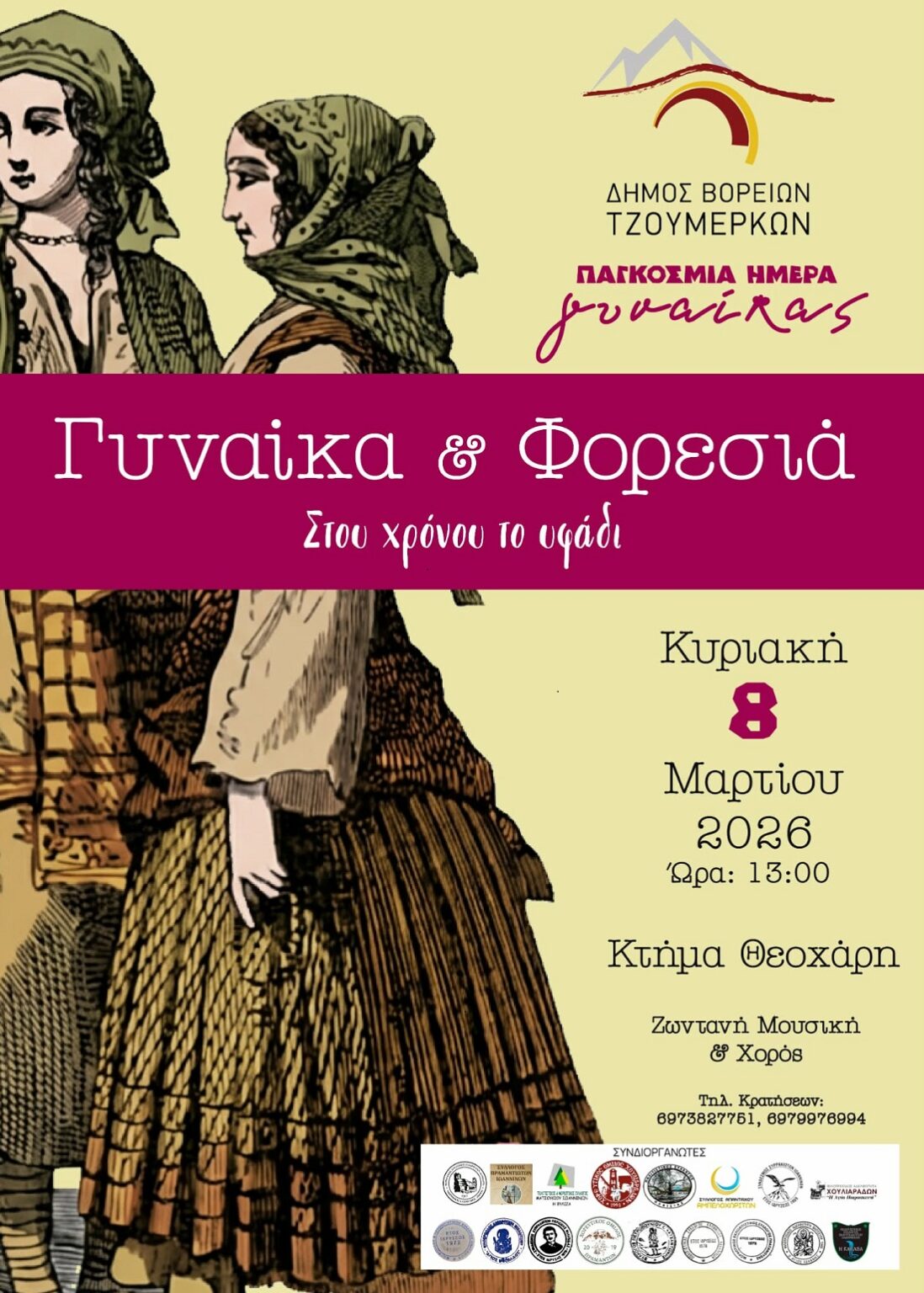https://www.agon.gr/wp-content/uploads/2026/02/Gynaika-kai-Foresia-214x3... 214w, https://www.agon.gr/wp-content/uploads/2026/02/Gynaika-kai-Foresia-732x1... 732w, https://www.agon.gr/wp-content/uploads/2026/02/Gynaika-kai-Foresia-768x1... 768w, https://www.agon.gr/wp-content/uploads/2026/02/Gynaika-kai-Foresia-1098x... 1098w, https://www.agon.gr/wp-content/uploads/2026/02/Gynaika-kai-Foresia-960x1... 960w, https://www.agon.gr/wp-content/uploads/2026/02/Gynaika-kai-Foresia-286x4... 286w, https://www.agon.gr/wp-content/uploads/2026/02/Gynaika-kai-Foresia-585x8... 585w" sizes="auto, (max-width: 772px) 100vw, 772px" title="«Γυναίκα & Φορεσιά – Στου χρόνου το υφάδι» από τον Δήμο Βορείων Τζουμέρκων 9" />Την εκδήλωση «Γυναίκα & Φορεσιά – Στου χρόνου το υφάδι» διοργανώνει ο Δήμος Βορείων Τζουμέρκων την Κυριακή 8 Μαρτίου, στη 1 το μεσημέρι, στο «Κτήμα Θεοχάρη», με αφορμή την Παγκόσμια Ημέρα της Γυναίκας.