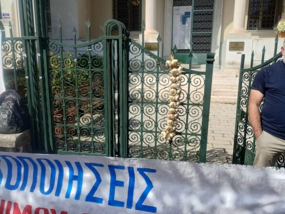 https://www.agon.gr/wp-content/uploads/2026/03/Skorda-Syllogos-Ergazomen... 300w, https://www.agon.gr/wp-content/uploads/2026/03/Skorda-Syllogos-Ergazomen... 1024w, https://www.agon.gr/wp-content/uploads/2026/03/Skorda-Syllogos-Ergazomen... 768w, https://www.agon.gr/wp-content/uploads/2026/03/Skorda-Syllogos-Ergazomen... 960w, https://www.agon.gr/wp-content/uploads/2026/03/Skorda-Syllogos-Ergazomen... 531w, https://www.agon.gr/wp-content/uploads/2026/03/Skorda-Syllogos-Ergazomen... 585w" sizes="auto, (max-width: 1100px) 100vw, 1100px" title="Μια αρμαθιά σκόρδα και τρίτη αναβολή της Δημοτικής Επιτροπής 10" />Μια αρμαθιά σκόρδα, κρεμασμένα στην είσοδο του Δημαρχείου, ήταν το στοιχείο, που έδωσε τον τόνο στη σημερινή κινητοποίηση του Συλλόγου Εργαζομένων ΟΤΑ Νομού Ιωαννίνων, με την οποία απετράπη, για τρίτη συνεχόμενη ημέρα, η συνεδρίαση της Δημοτικής Επιτροπής.