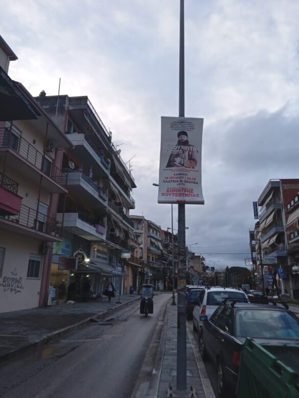 https://www.agon.gr/wp-content/uploads/2026/03/aris-velouxiotis-afisa-22... 225w, https://www.agon.gr/wp-content/uploads/2026/03/aris-velouxiotis-afisa-76... 768w, https://www.agon.gr/wp-content/uploads/2026/03/aris-velouxiotis-afisa-11... 1152w, https://www.agon.gr/wp-content/uploads/2026/03/aris-velouxiotis-afisa-96... 960w, https://www.agon.gr/wp-content/uploads/2026/03/aris-velouxiotis-afisa-30... 300w, https://www.agon.gr/wp-content/uploads/2026/03/aris-velouxiotis-afisa-58... 585w" sizes="auto, (max-width: 810px) 100vw, 810px" title="Ο Άρης αιωρούμενος 9" />Στο μωσαϊκό εμποδίων των δρόμων αυτής της πόλης, το οποίο περιγράφαμε σε σχόλιο σε προηγούμενη περιήγηση στα Γιάννενα, εντάσσονται και οι αφίσες, οι οποίες παραμένουν σε επιφάνειες, σε τοίχους, σε κορμούς δέντρων ή αιωρούμενες σε στύλους της ΔΕΗ.