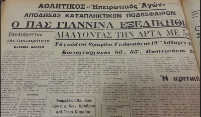 https://www.agon.gr/wp-content/uploads/2026/03/HA-PAS-ARTA-300x175.jpg 300w, https://www.agon.gr/wp-content/uploads/2026/03/HA-PAS-ARTA-1024x596.jpg 1024w, https://www.agon.gr/wp-content/uploads/2026/03/HA-PAS-ARTA-768x447.jpg 768w, https://www.agon.gr/wp-content/uploads/2026/03/HA-PAS-ARTA-960x559.jpg 960w, https://www.agon.gr/wp-content/uploads/2026/03/HA-PAS-ARTA-687x400.jpg 687w, https://www.agon.gr/wp-content/uploads/2026/03/HA-PAS-ARTA-585x341.jpg 585w" sizes="auto, (max-width: 1027px) 100vw, 1027px" title="Όταν ο ΠΑΣ συνέτριψε με 5-0 την Αναγέννηση Άρτας στο ντέρμπι της Ηπείρου! 10" />Τέτοιες ημέρες του 1973 η Ήπειρος ήταν στο πόδι για το ντέρμπι των δύο μεγαλύτερων ομάδων, του ΠΑΣ και της Αναγέννησης Άρτας, που προκαλούσε πολλές συζητήσεις για αρκετό καιρό πριν και μετά.