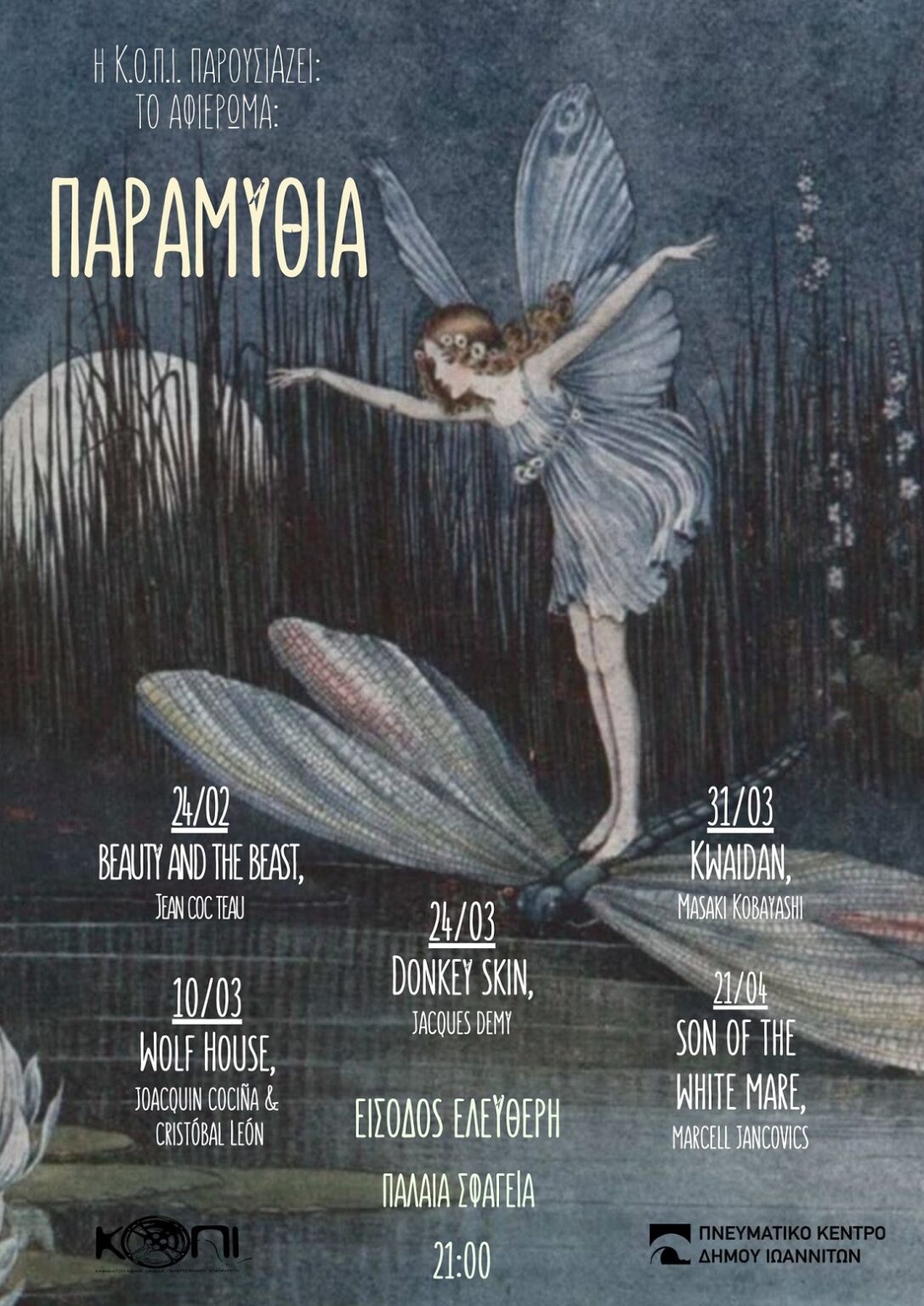 https://www.agon.gr/wp-content/uploads/2026/02/Paramythia-KOPI-212x300.jpg 212w, https://www.agon.gr/wp-content/uploads/2026/02/Paramythia-KOPI-724x1024.jpg 724w, https://www.agon.gr/wp-content/uploads/2026/02/Paramythia-KOPI-768x1086.jpg 768w, https://www.agon.gr/wp-content/uploads/2026/02/Paramythia-KOPI-1087x1536... 1087w, https://www.agon.gr/wp-content/uploads/2026/02/Paramythia-KOPI-960x1357.jpg 960w, https://www.agon.gr/wp-content/uploads/2026/02/Paramythia-KOPI-283x400.jpg 283w, https://www.agon.gr/wp-content/uploads/2026/02/Paramythia-KOPI-585x827.jpg 585w" sizes="auto, (max-width: 764px) 100vw, 764px" title="«Παραμύθια» στον κινηματογράφο από την Κ.Ο.Π.Ι. 4" />«Παραμύθια» τιτλοφορείται το αφιέρωμα που παρουσιάζει η Κ.Ο.Π.Ι. για το εαρινό εξάμηνο 2025-2026, επιχειρώντας μια κινηματογραφική προσέγγιση της φαντασίας και των πολλαπλών εκφάνσεών της μέσα από πέντε ταινίες.