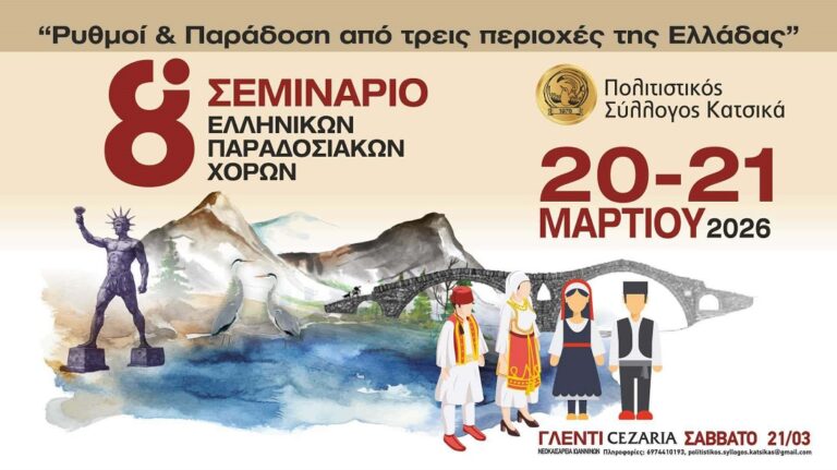 https://www.agon.gr/wp-content/uploads/2026/03/Katsikas-seminario-xorwn-... 300w, https://www.agon.gr/wp-content/uploads/2026/03/Katsikas-seminario-xorwn-... 1024w, https://www.agon.gr/wp-content/uploads/2026/03/Katsikas-seminario-xorwn-... 768w, https://www.agon.gr/wp-content/uploads/2026/03/Katsikas-seminario-xorwn-... 960w, https://www.agon.gr/wp-content/uploads/2026/03/Katsikas-seminario-xorwn-... 712w, https://www.agon.gr/wp-content/uploads/2026/03/Katsikas-seminario-xorwn-... 585w" sizes="auto, (max-width: 1100px) 100vw, 1100px" title="«Ρυθμοί & Παράδοση» από τρεις περιοχές της Ελλάδας 4" />Το 8ο Σεμινάριο Ελληνικών Παραδοσιακών Χορών, με τίτλο «Ρυθμοί & Παράδοση» από τρεις περιοχές της Ελλάδας, διοργανώνει ο Πολιτιστικός Σύλλογος Κατσικά Ιωαννίνων την Παρασκευή 20 και το Σάββατο 21 Μαρτίου.