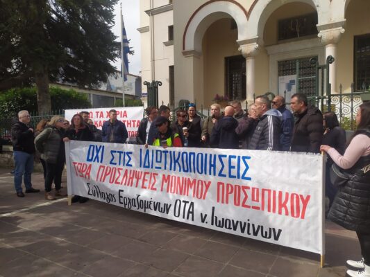 https://www.agon.gr/wp-content/uploads/2026/03/Kinitopoiisi-OTA-2h-mera-... 300w, https://www.agon.gr/wp-content/uploads/2026/03/Kinitopoiisi-OTA-2h-mera-... 1024w, https://www.agon.gr/wp-content/uploads/2026/03/Kinitopoiisi-OTA-2h-mera-... 768w, https://www.agon.gr/wp-content/uploads/2026/03/Kinitopoiisi-OTA-2h-mera-... 760w, https://www.agon.gr/wp-content/uploads/2026/03/Kinitopoiisi-OTA-2h-mera-... 960w, https://www.agon.gr/wp-content/uploads/2026/03/Kinitopoiisi-OTA-2h-mera-... 533w, https://www.agon.gr/wp-content/uploads/2026/03/Kinitopoiisi-OTA-2h-mera-... 585w" sizes="auto, (max-width: 1100px) 100vw, 1100px" title="Στα άκρα η κόντρα και στη μέση οι συμβασιούχοι 10" />«Τη… μέρα της μαρμότας» ζει το Δημαρχείο Ιωαννίνων, όπου για δεύτερη ημέρα αναβλήθηκε η συνεδρίαση της Δημοτικής Επιτροπής, εξαιτίας της κινητοποίησης των εργαζομένων που αντιδρούν στη σύμβαση ύψους 2,4 εκατ. ευρώ ετησίως για την ανάθεση υπηρεσιών αποκομιδής και καθαριότητας σε ιδιώτες, για δύο συν ένα χρόνια.