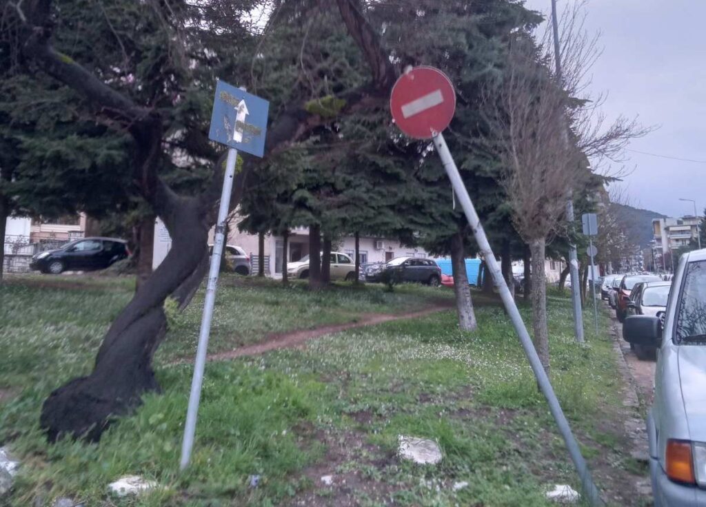 Δύο πινακίδες… σε διάλογο – και μια πόλη σε αμηχανία