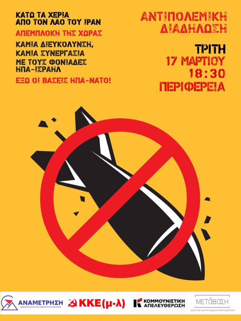 Κάλεσμα σε αντιπολεμική διαδήλωση