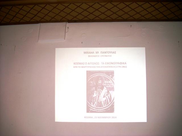 Ιδιαίτερα επιτυχημένη και άκρως ενδιαφέρουσα ήταν η επετειακή εκδήλωση που διοργάνωσε ο Σύλλογος Ηπειρωτών Κοζάνης στην κεντρική αίθουσα του Λαογραφικού Μουσείου της πόλης μας στις 23 Νοεμβρίου 2014 για την συμπλήρωση των τριακοσίων χρόνων από την γέννηση του Αγίου Κοσμά του Αιτωλού.